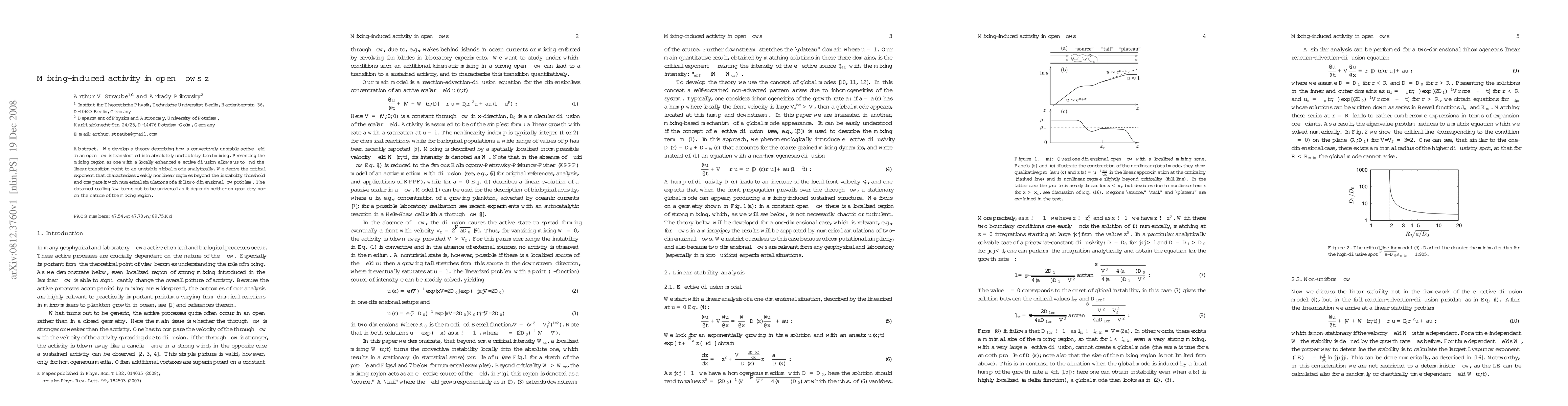 This research presents a theory explaining how an active field in an open flow becomes absolutely unstable due to local mixing, deriving an analytical transition point and a universal critical exponent. The findings are validated through comparison with numerical simulations of a 2D flow problem.