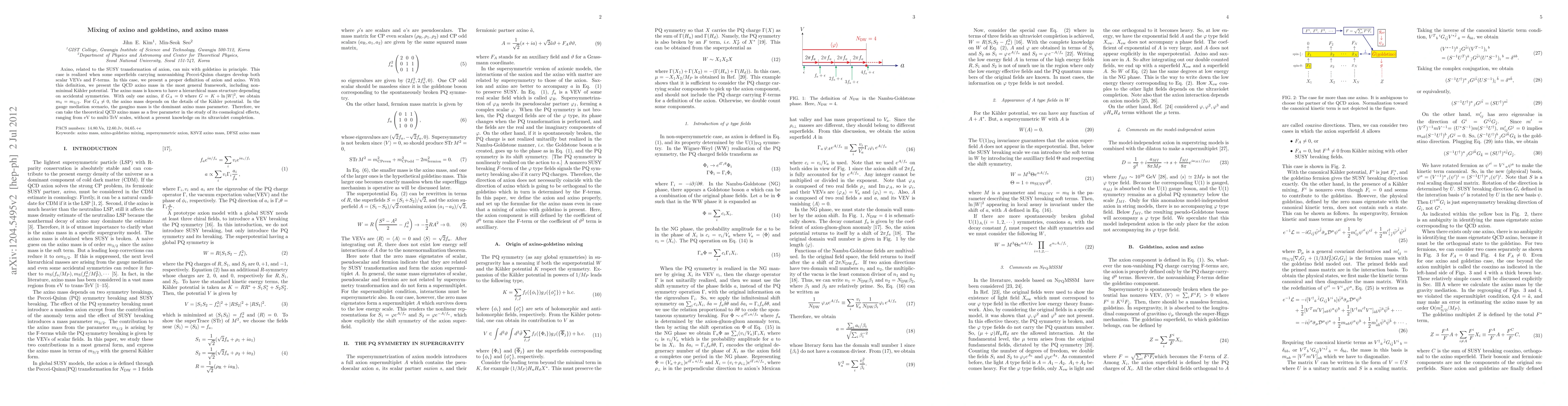 This paper explores the mixing between axino and goldstino, defining axion and axino in a framework that includes non-minimal Kähler potentials. It presents a QCD axino mass formula that depends on the Kähler potential and gauge mediation, allowing the axino mass to vary widely from eV to multi-TeV scales.