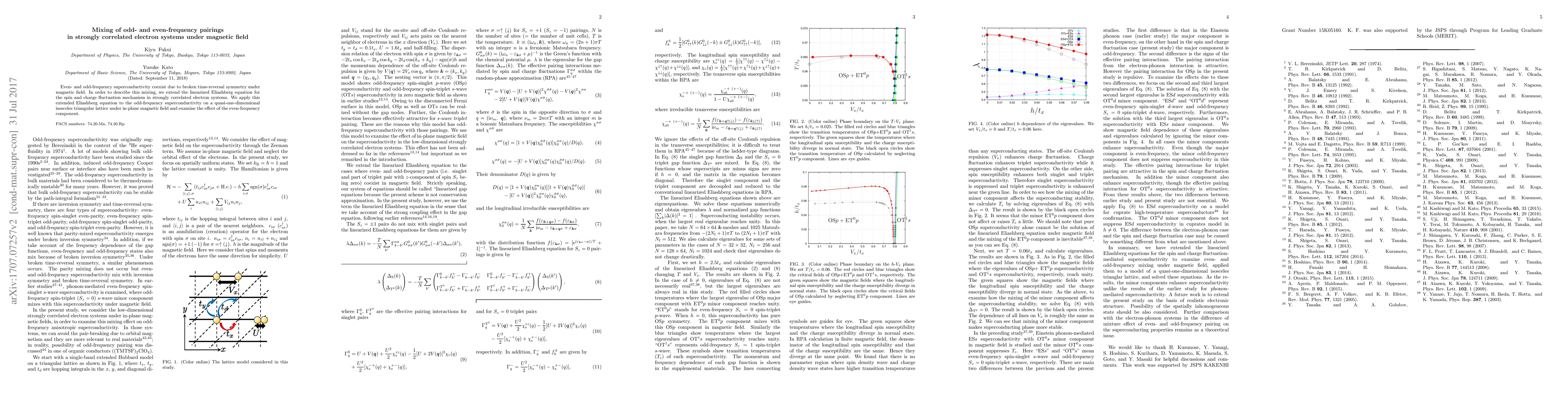 This paper investigates the coexistence and mixing of even- and odd-frequency superconductivity in strongly correlated electron systems subjected to a magnetic field, extending the linearized Eliashberg equation to describe the spin and charge fluctuation mechanisms. The study applies this framework to a quasi-one-dimensional isosceles triangular lattice to analyze the influence of the even-frequency component on odd-frequency superconductivity.