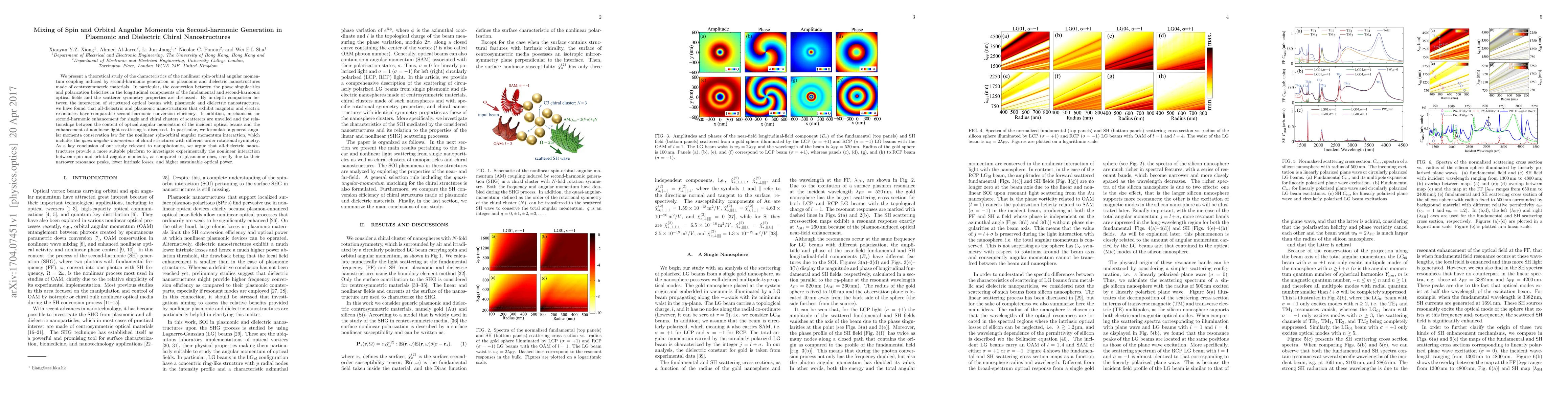 This paper investigates the nonlinear spin-orbital angular momentum coupling in plasmonic and dielectric chiral nanostructures via second-harmonic generation, revealing comparable efficiency between the two types. It concludes that all-dielectric nanostructures are more suitable for experimental studies due to their narrower resonance peaks, lower losses, and higher optical power tolerance.