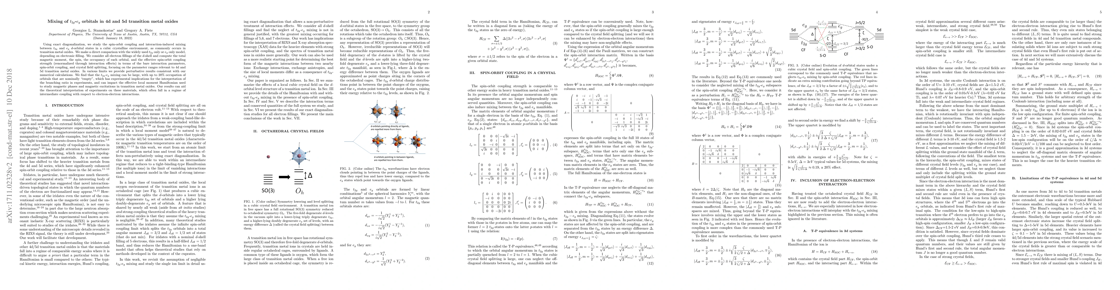 This paper investigates the mixing of $t_{2g}$ and $e_g$ orbitals in 4d and 5d transition metal oxides using exact diagonalization, revealing significant $t_{2g}$-$e_g$ orbital mixing that can affect experimental interpretations and magnetic phase studies. The study finds up to 20% occupation in nominally "empty" orbitals, challenging traditional $t_{2g}$-only or $e_g$-only models.