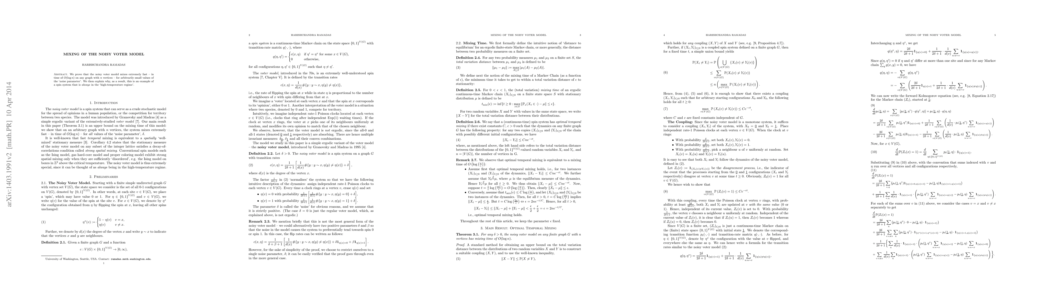 We prove that the noisy voter model mixes extremely fast -- in time of $O(\log n)$ on any graph with $n$ vertices -- for arbitrarily small values of the `noise parameter'. We then explain why, as a result, this is an example of a spin system that is always in the `high-temperature regime'.