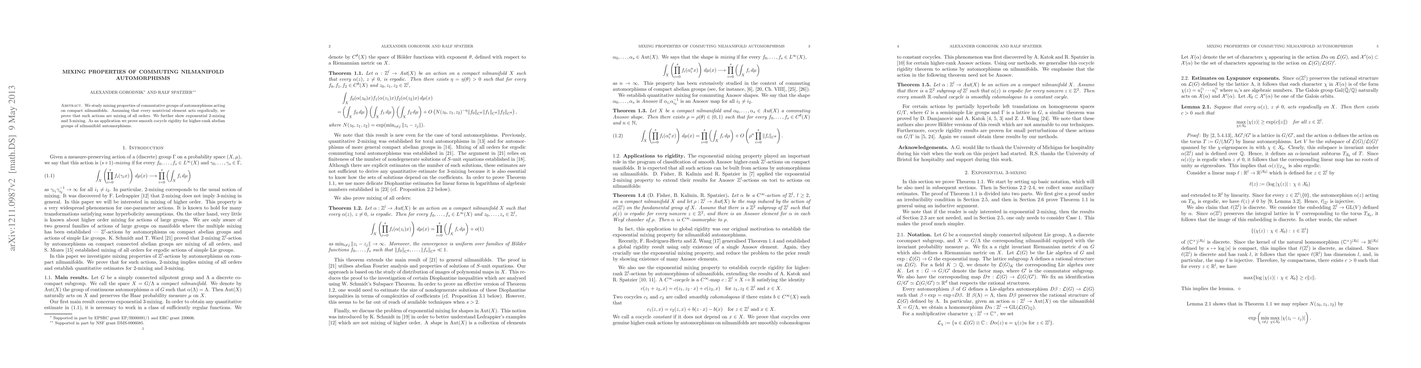 This paper investigates the mixing properties of commutative automorphism groups acting on compact nilmanifolds, demonstrating that these actions are mixing of all orders and exhibit exponential 2-mixing and 3-mixing. The findings also establish smooth cocycle rigidity for higher-rank abelian groups of nilmanifold automorphisms.