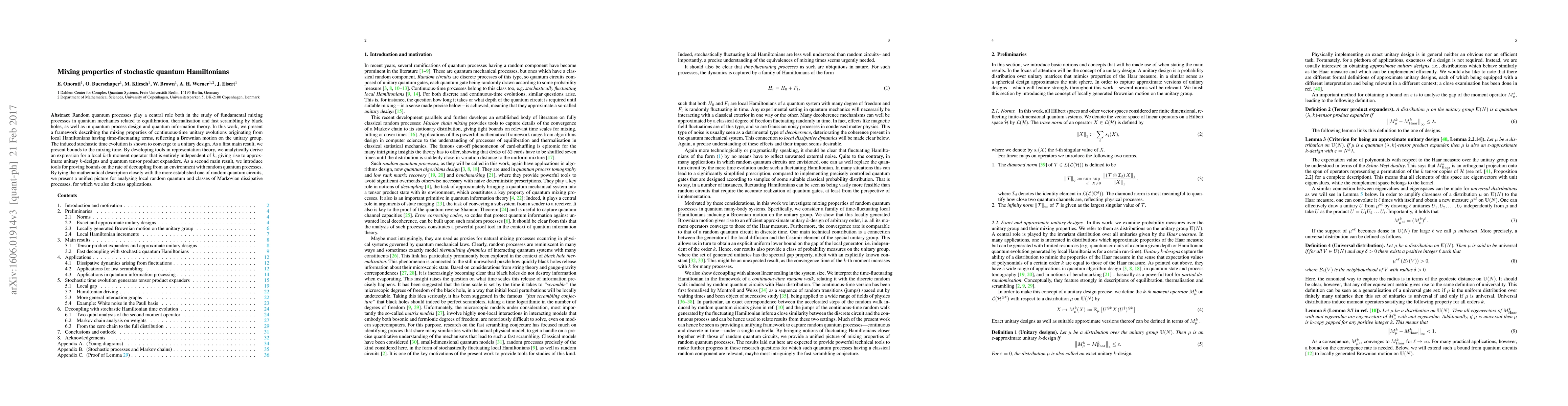 Researchers developed a framework to analyze mixing properties of stochastic quantum Hamiltonians, providing bounds on mixing time and tools for proving rates of decoupling from an environment.