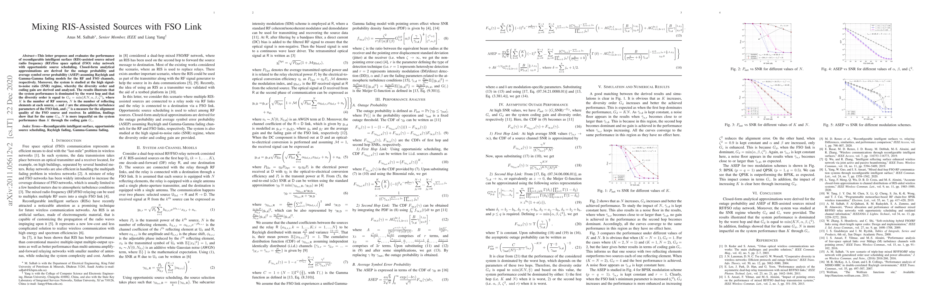This paper evaluates a RIS-assisted RF/FSO relay network with mixed RF and FSO links, deriving analytical expressions for outage probability and ASEP under Rayleigh and Gamma-Gamma fading. It finds that system performance is mainly influenced by the worst link, with the diversity order dependent on RF users, FSO turbulence, and FSO alignment quality.
