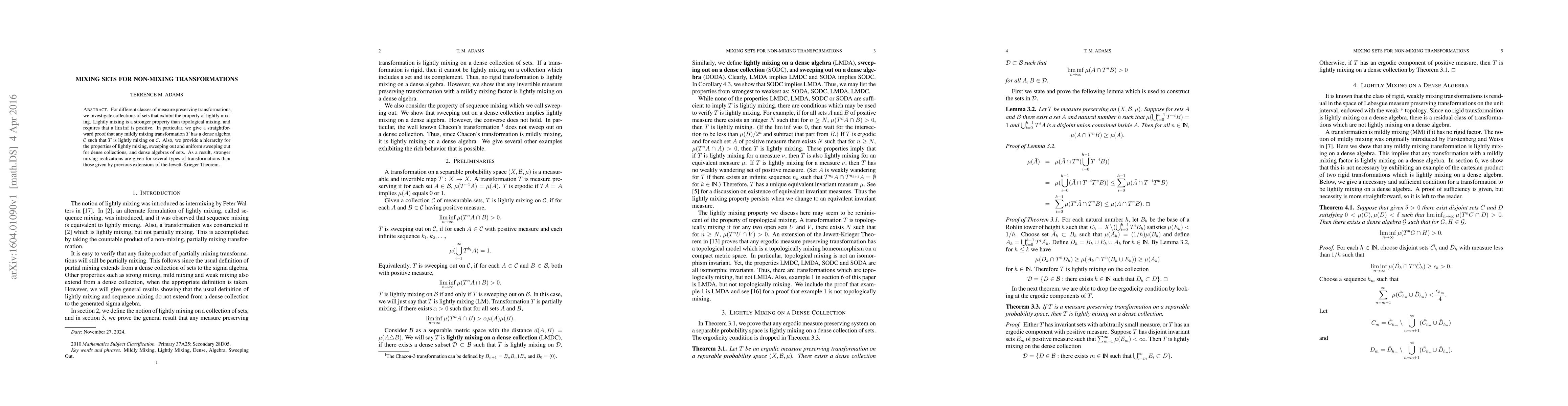 This paper explores collections of sets that demonstrate the property of lightly mixing for various measure-preserving transformations, which is a stronger form of topological mixing. It proves that any mildly mixing transformation has a dense algebra where it is lightly mixing, and establishes a hierarchy for lightly mixing, sweeping out, and uniform sweeping out properties for dense collections and algebras.