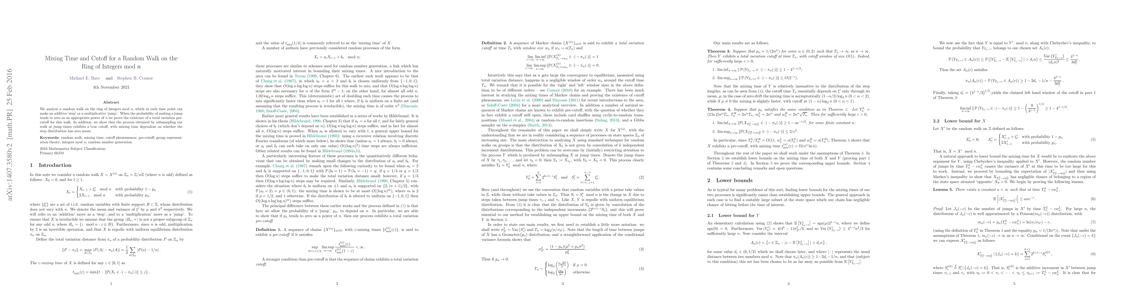 The paper analyzes a random walk on the ring of integers mod $n$, which can make additive steps or multiplicative jumps. The authors prove the existence of a total variation pre-cutoff for this walk when the probability of making a jump tends to zero as an appropriate power of $n$. They also show that a subsampled version of the walk exhibits a true cutoff, with mixing time dependent on whether the step distribution has zero mean.