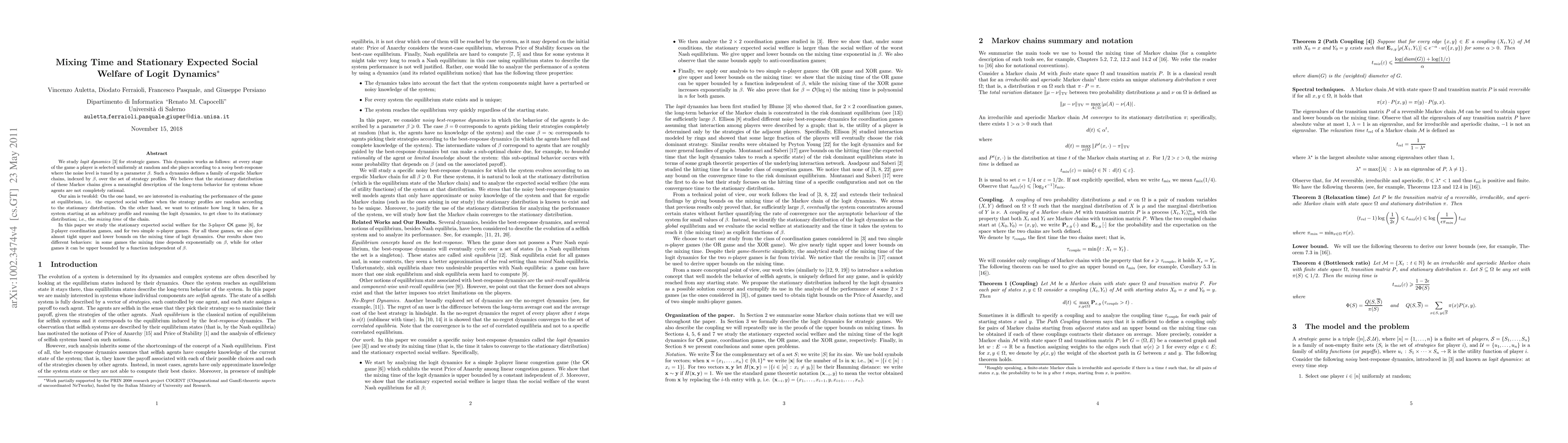 We study "logit dynamics" [Blume, Games and Economic Behavior, 1993] for strategic games. This dynamics works as follows: at every stage of the game a player is selected uniformly at random and she plays according to a "noisy" best-response where the noise level is tuned by a parameter $\beta$. Such a dynamics defines a family of ergodic Markov chains, indexed by $\beta$, over the set of strategy profiles. We believe that the stationary distribution of these Markov chains gives a meaningful description of the long-term behavior for systems whose agents are not completely rational. Our aim is twofold: On the one hand, we are interested in evaluating the performance of the game at equilibrium, i.e. the expected social welfare when the strategy profiles are random according to the stationary distribution. On the other hand, we want to estimate how long it takes, for a system starting at an arbitrary profile and running the logit dynamics, to get close to its stationary distribution; i.e., the "mixing time" of the chain. In this paper we study the stationary expected social welfare for the 3-player CK game, for 2-player coordination games, and for two simple $n$-player games. For all these games, we also give almost tight upper and lower bounds on the mixing time of logit dynamics. Our results show two different behaviors: in some games the mixing time depends exponentially on $\beta$, while for other games it can be upper bounded by a function independent of $\beta$.