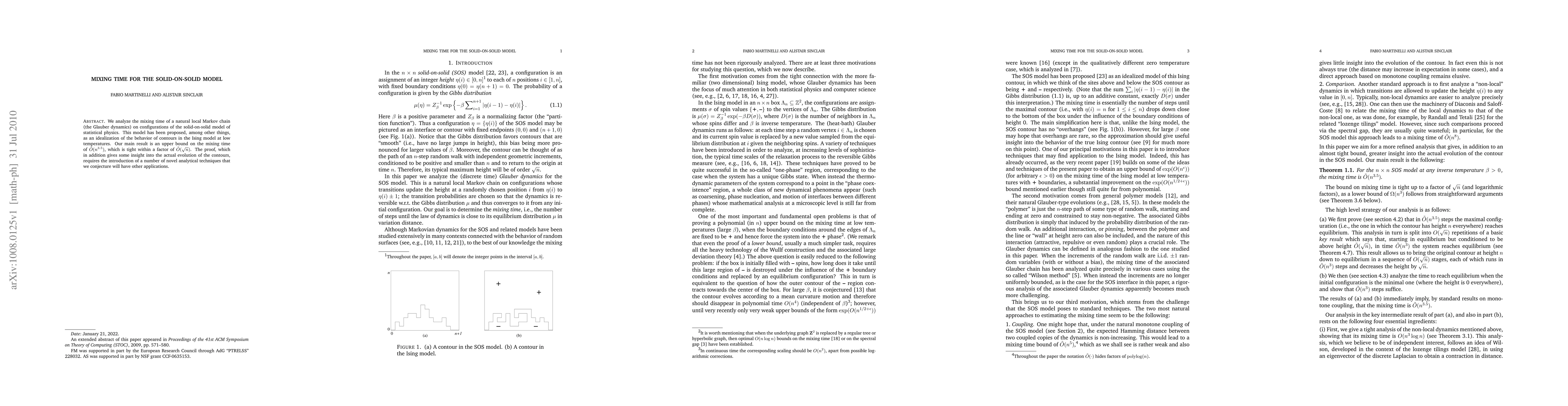 This research paper establishes an upper bound of O(n^3.5) on the mixing time of a natural local Markov chain for the solid-on-solid model, with implications for understanding phase transitions in statistical physics.