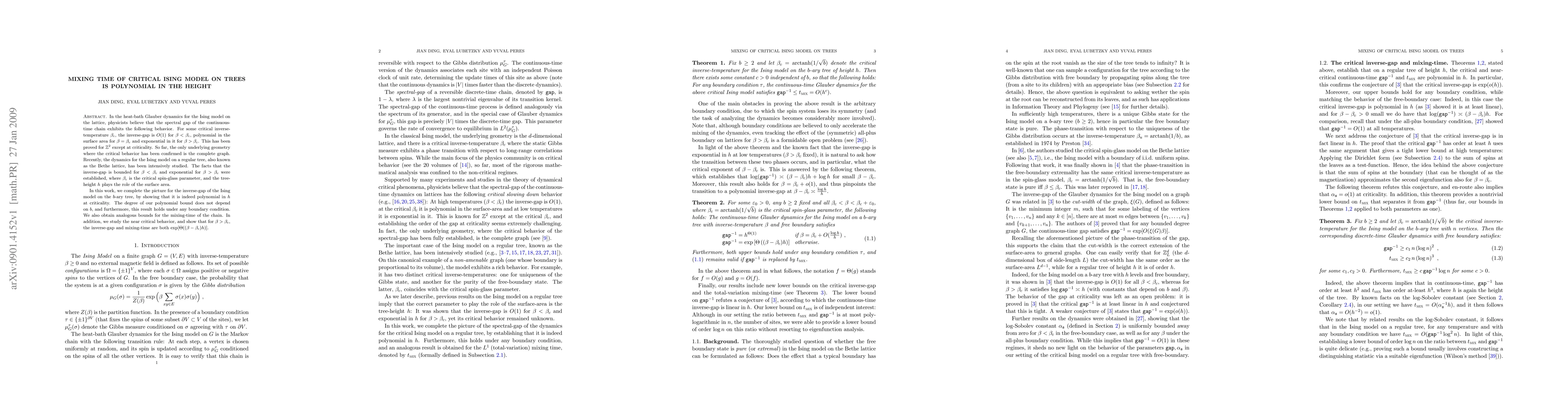 This paper demonstrates that the mixing time of the critical Ising model on a $b$-ary tree is polynomial in the tree height $h$, completing the understanding of the inverse-gap behavior at criticality. The study also shows that the mixing time and inverse-gap exhibit exponential growth for temperatures above the critical parameter $\beta_c$.