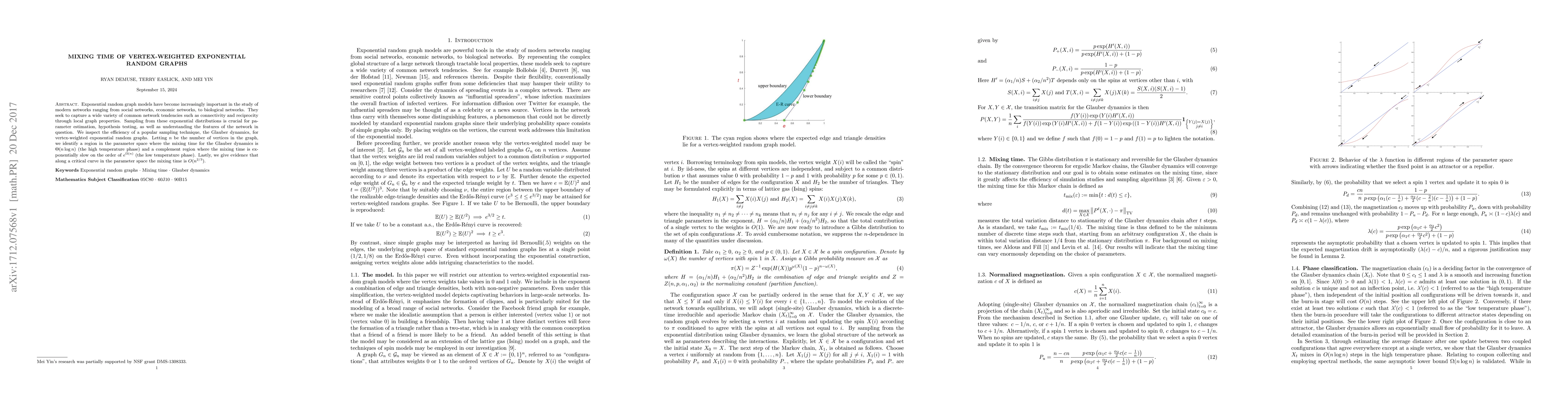 Exponential random graph models have become increasingly important in the study of modern networks ranging from social networks, economic networks, to biological networks. They seek to capture a wide variety of common network tendencies such as connectivity and reciprocity through local graph properties. Sampling from these exponential distributions is crucial for parameter estimation, hypothesis testing, as well as understanding the features of the network in question. We inspect the efficiency of a popular sampling technique, the Glauber dynamics, for vertex-weighted exponential random graphs. Letting $n$ be the number of vertices in the graph, we identify a region in the parameter space where the mixing time for the Glauber dynamics is $\Theta(n \log n)$ (the high temperature phase) and a complement region where the mixing time is exponentially slow on the order of $e^{\Omega(n)}$ (the low temperature phase). Lastly, we give evidence that along a critical curve in the parameter space the mixing time is $O(n^{2/3})$.