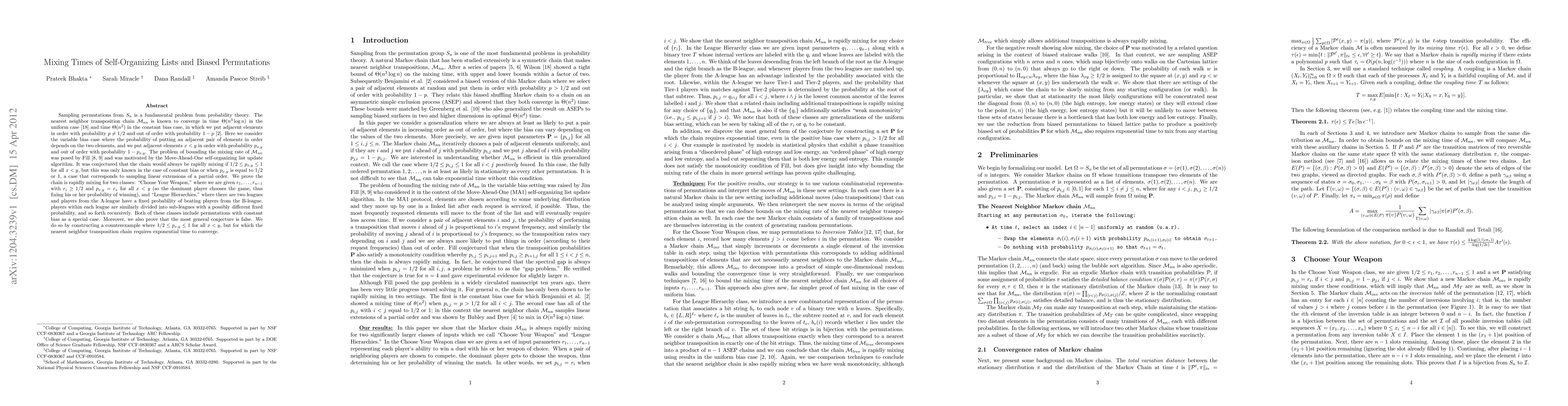 theory. The nearest neighbor transposition chain \cal{M}}_{nn} is known to