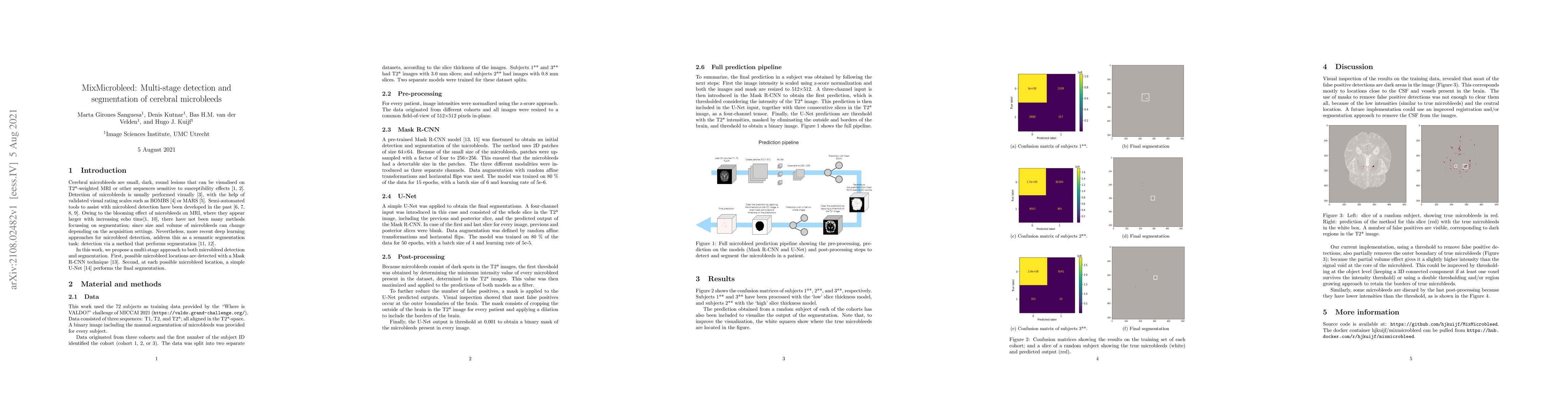 Cerebral microbleeds are small, dark, round lesions that can be visualised on T2*-weighted MRI or other sequences sensitive to susceptibility effects. In this work, we propose a multi-stage approach to both microbleed detection and segmentation. First, possible microbleed locations are detected with a Mask R-CNN technique. Second, at each possible microbleed location, a simple U-Net performs the final segmentation. This work used the 72 subjects as training data provided by the "Where is VALDO?" challenge of MICCAI 2021.