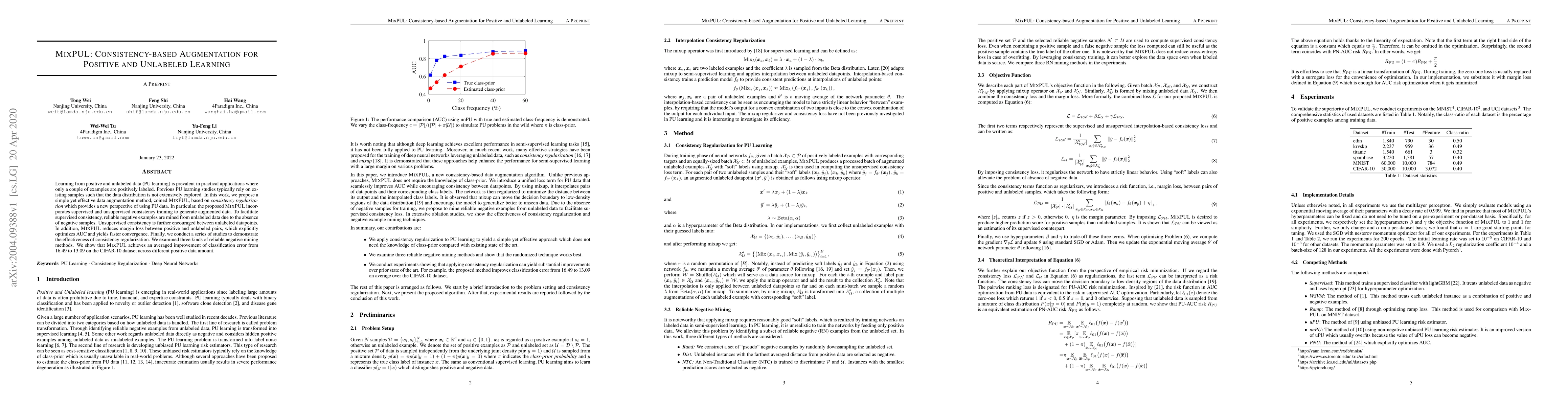 MixPUL proposes a consistency-based augmentation method for positive and unlabeled learning, incorporating supervised and unsupervised consistency training to generate augmented data and reduce margin loss, achieving an averaged improvement in classification error on the CIFAR-10 dataset.