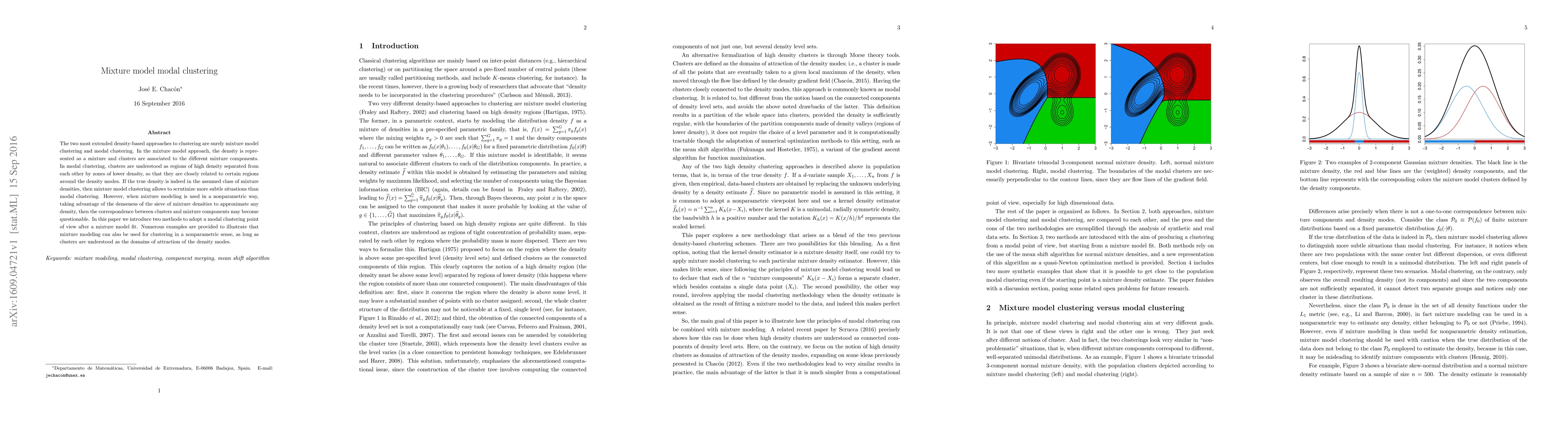 This paper explores the relationship between mixture model clustering and modal clustering, introducing two methods to adopt a modal clustering perspective after fitting a mixture model. It demonstrates that mixture modeling can effectively cluster data even in a nonparametric manner by identifying clusters as domains of attraction to density modes.