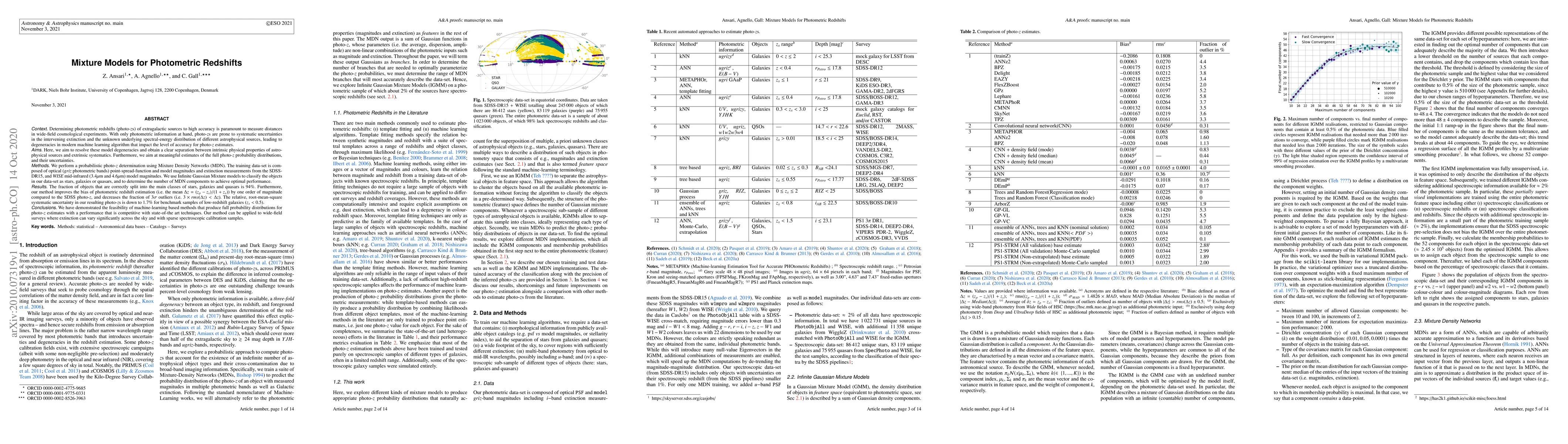Determining photometric redshifts to high accuracy is paramount to measure distances in wide-field cosmological experiments. With only photometric information at hand, photo-zs are prone to systematic uncertainties in the intervening extinction and the unknown underlying spectral-energy distribution of different astrophysical sources. Here, we aim to resolve these model degeneracies and obtain a clear separation between intrinsic physical properties of astrophysical sources and extrinsic systematics. We aim at estimates of the full photo-z probability distributions, and their uncertainties. We perform a probabilistic photo-z determination using Mixture Density Networks (MDN). The training data-set is composed of optical ($griz$) point-spread-function and model magnitudes and extinction measurements from the SDSS-DR15, and WISE midinfrared ($3.4 \mu$m and $4.6 \mu$m) model magnitudes. We use Infinite Gaussian Mixture models to classify the objects in our data-set as stars, galaxies or quasars, and to determine the number of MDN components to achieve optimal performance. The fraction of objects that are correctly split into the main classes is 94%. Our method improves the bias of photometric redshift estimation (i.e. the mean $\Delta z$ = (zp - zs)/(1 + zs)) by one order of magnitude compared to the SDSS photo-z, and decreases the fraction of $3 \sigma$ outliers (i.e. 3rms$(\Delta z) < \Delta z$). The relative, root-mean-square systematic uncertainty in our resulting photo-zs is down to 1.7% for low-redshift galaxies (zs $<$ 0.5). We have demonstrated the feasibility of machine-learning based methods that produce full probability distributions for photo-z estimates with a performance that is competitive with state-of-the art techniques. Our method can be applied to wide-field surveys where extinction can vary significantly across the sky and with sparse spectroscopic calibration samples.