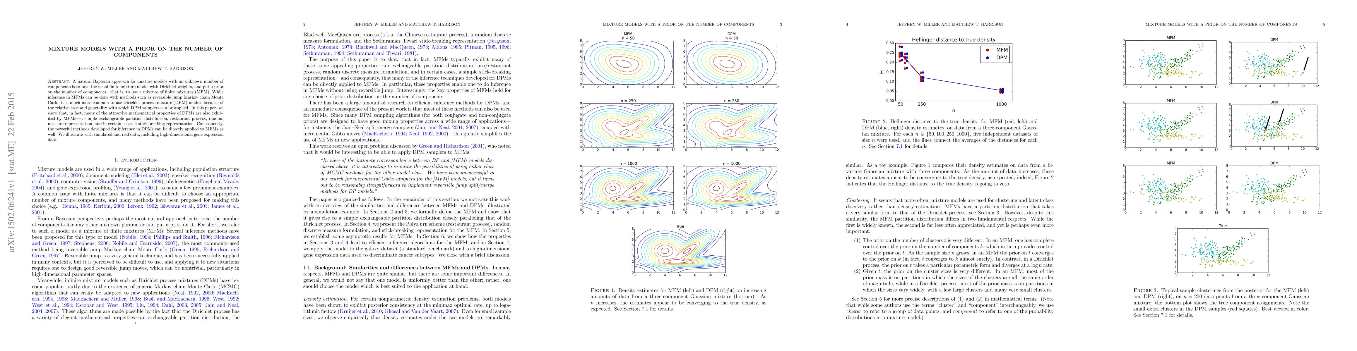 This paper explores mixture models with a prior on the number of components, demonstrating that mixture of finite mixtures (MFM) models share many mathematical properties with Dirichlet process mixture (DPM) models, allowing the use of powerful DPM inference methods for MFMs. The study is illustrated with both simulated and real data, including high-dimensional gene expression data.