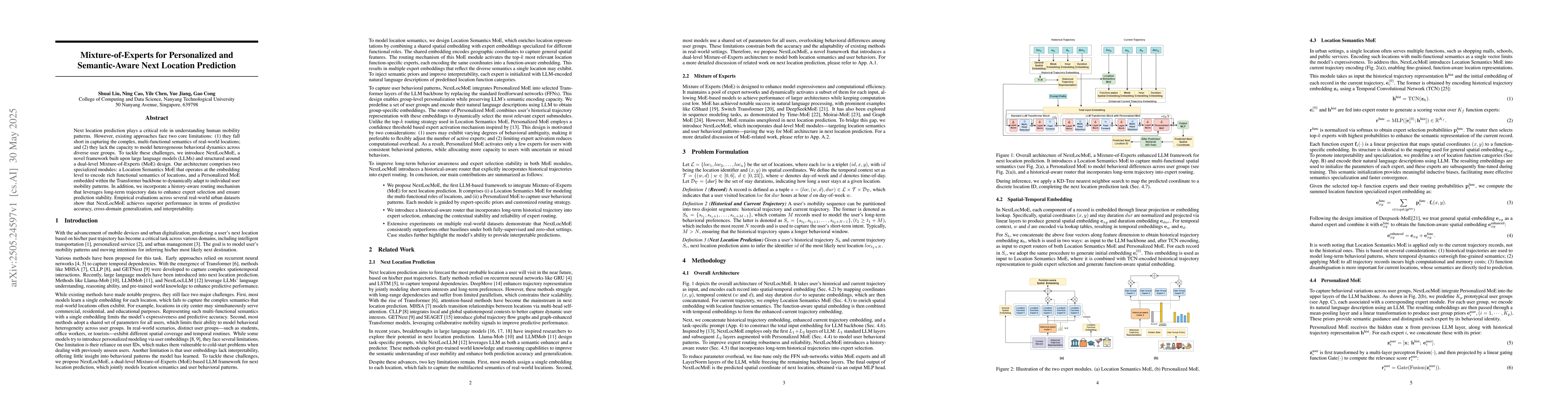 A new framework called NextLocMoE uses large language models and a dual-level Mixture-of-Experts design to predict the next location of users in real-world urban environments with high accuracy and interpretability.