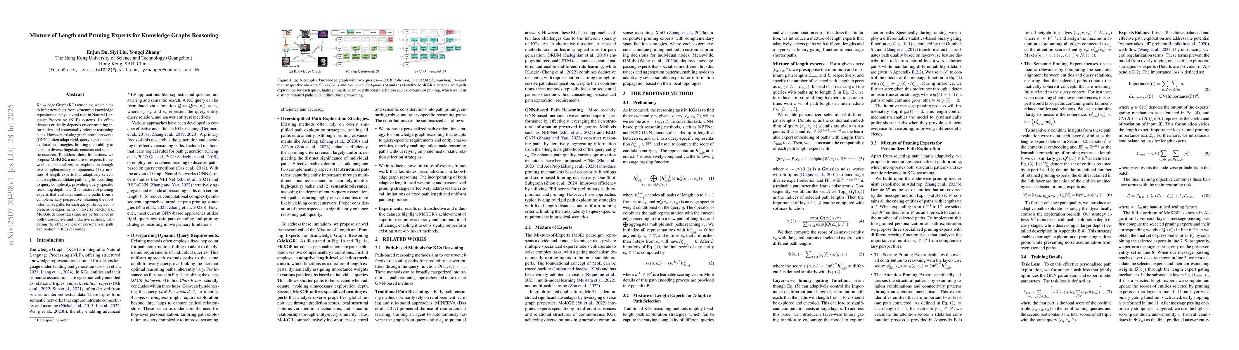 Knowledge Graph (KG) reasoning, which aims to infer new facts from structured knowledge repositories, plays a vital role in Natural Language Processing (NLP) systems. Its effectiveness critically depends on constructing informative and contextually relevant reasoning paths. However, existing graph neural networks (GNNs) often adopt rigid, query-agnostic path-exploration strategies, limiting their ability to adapt to diverse linguistic contexts and semantic nuances. To address these limitations, we propose \textbf{MoKGR}, a mixture-of-experts framework that personalizes path exploration through two complementary components: (1) a mixture of length experts that adaptively selects and weights candidate path lengths according to query complexity, providing query-specific reasoning depth; and (2) a mixture of pruning experts that evaluates candidate paths from a complementary perspective, retaining the most informative paths for each query. Through comprehensive experiments on diverse benchmark, MoKGR demonstrates superior performance in both transductive and inductive settings, validating the effectiveness of personalized path exploration in KGs reasoning.