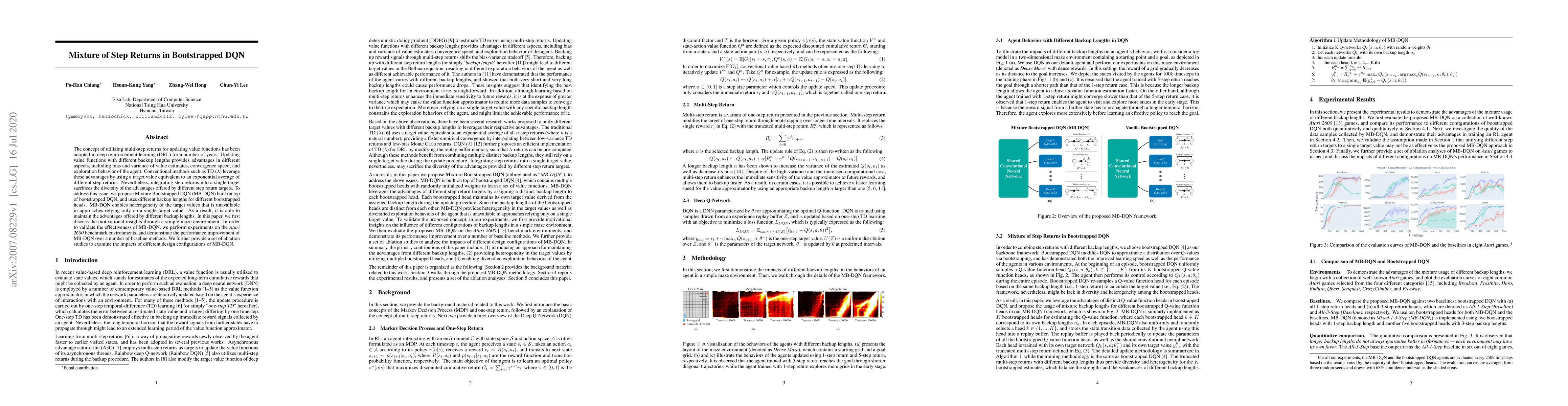 The paper proposes Mixture Bootstrapped DQN (MB-DQN) to leverage the benefits of different step returns in deep reinforcement learning by using multiple backup lengths for different bootstrapped heads. Experiments on Atari 2600 environments show that MB-DQN outperforms baseline methods, demonstrating improved performance through heterogeneity in target values.