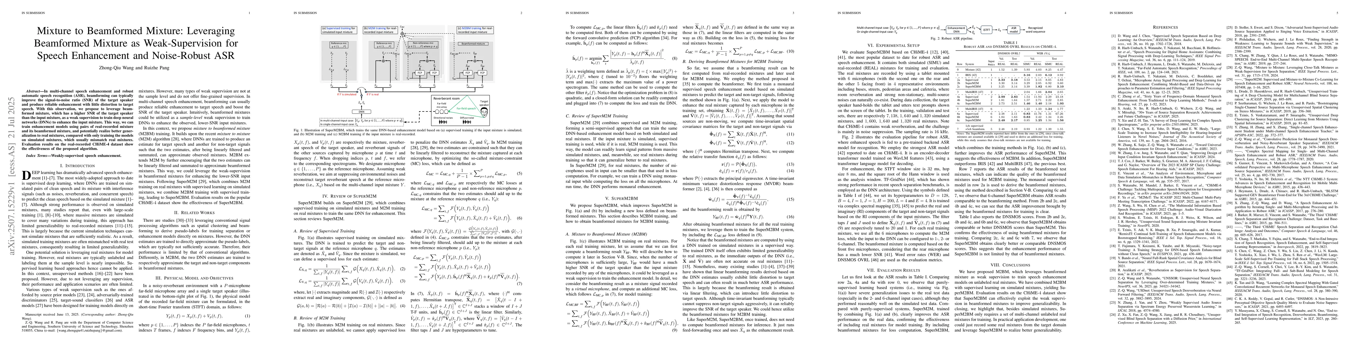 In multi-channel speech enhancement and robust automatic speech recognition (ASR), beamforming can typically improve the signal-to-noise ratio (SNR) of the target speaker and produce reliable enhancement with little distortion to target speech. With this observation, we propose to leverage beamformed mixture, which has a higher SNR of the target speaker than the input mixture, as a weak supervision to train deep neural networks (DNNs) to enhance the input mixture. This way, we can train enhancement models using pairs of real-recorded mixture and its beamformed mixture, and potentially realize better generalization to real mixtures, compared with only training the models on simulated mixtures, which usually mismatch real mixtures. Evaluation results on the real-recorded CHiME-4 dataset show the effectiveness of the proposed algorithm.