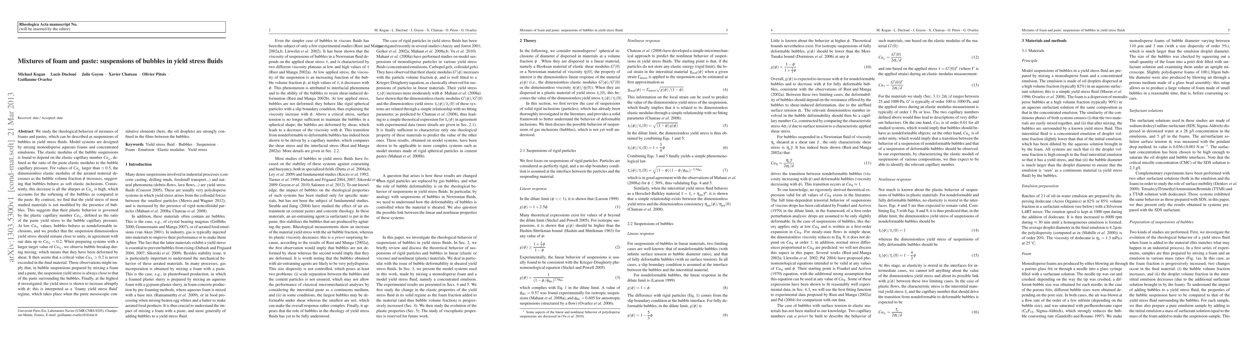 This study investigates the rheological behavior of foam-paste mixtures, finding that the elastic modulus decreases with increasing bubble volume fraction, especially when the elastic capillary number is high. The yield stress remains largely unaffected, with bubble deformation and breakup occurring at high plastic capillary numbers.