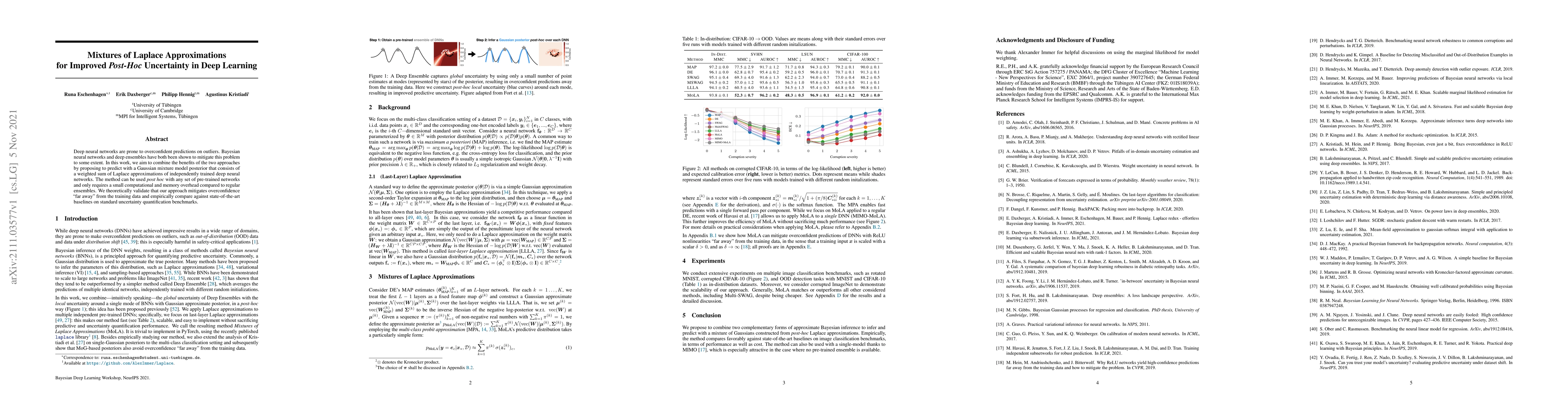 This paper proposes a Gaussian mixture model using Laplace approximations from multiple independently trained deep neural networks to improve post-hoc uncertainty estimates and reduce overconfidence in predictions, especially for outliers. The method requires minimal additional computational resources and outperforms existing baselines in uncertainty quantification benchmarks.