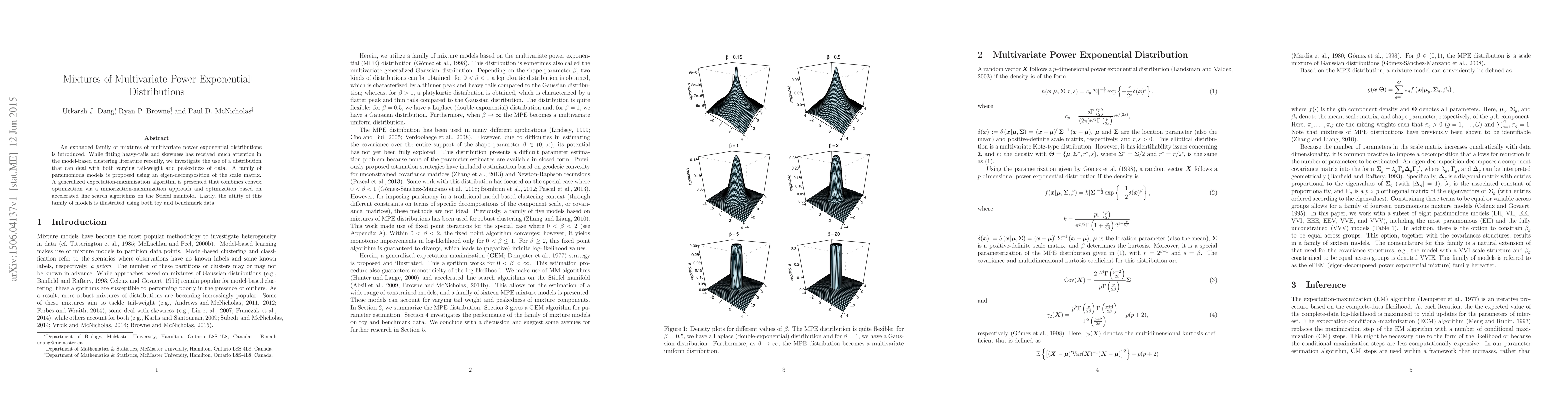 This paper introduces a new family of mixtures of multivariate power exponential distributions to handle heavy-tails and skewness in data. It proposes parsimonious models using an eigen-decomposition and presents a generalized expectation-maximization algorithm for fitting, demonstrating utility through toy and benchmark datasets.
