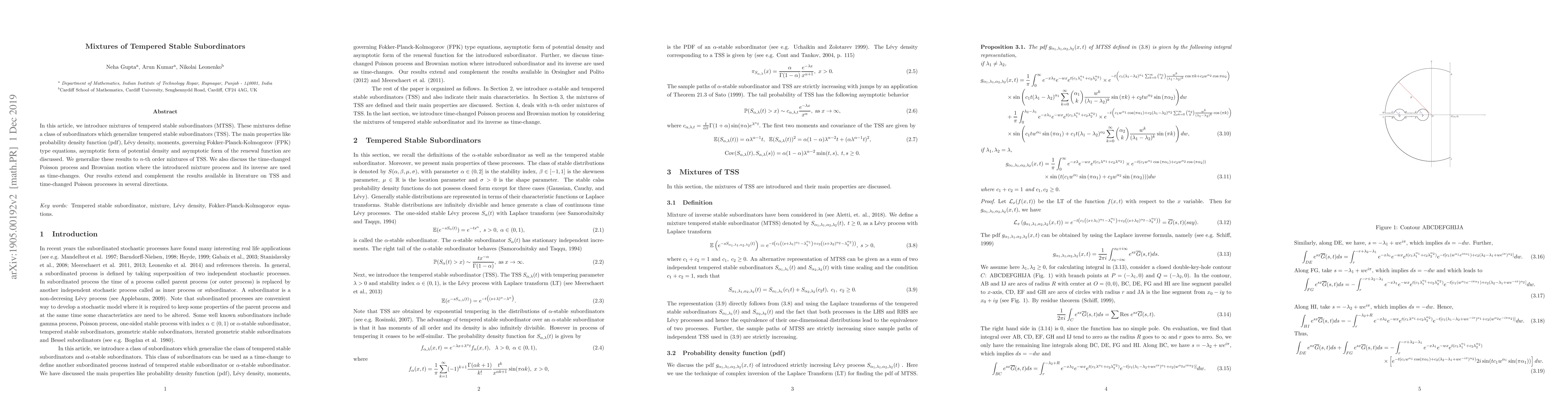 This paper introduces mixtures of tempered stable subordinators (TSS), generalizing the original TSS, and explores their properties including PDF, Lévy density, moments, and governing FPK equations. It also extends these findings to n-th order mixtures of TSS.