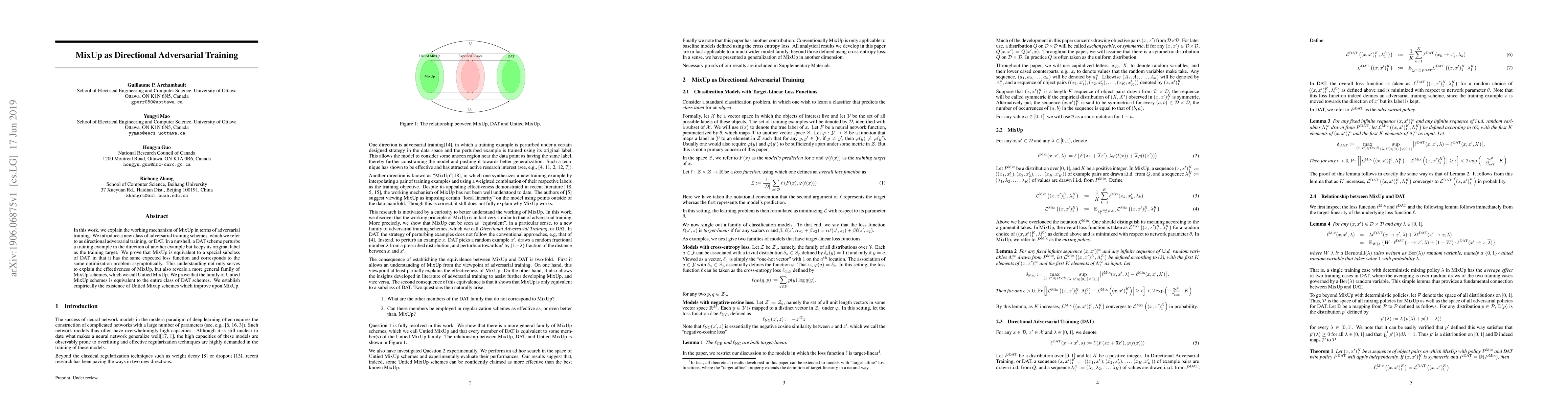 This paper explores MixUp through the lens of adversarial training, introducing directional adversarial training (DAT) as a broader framework. It demonstrates that MixUp is a specific instance of DAT, and proposes Untied MixUp, a more general family of DAT schemes that can outperform MixUp, as shown empirically.