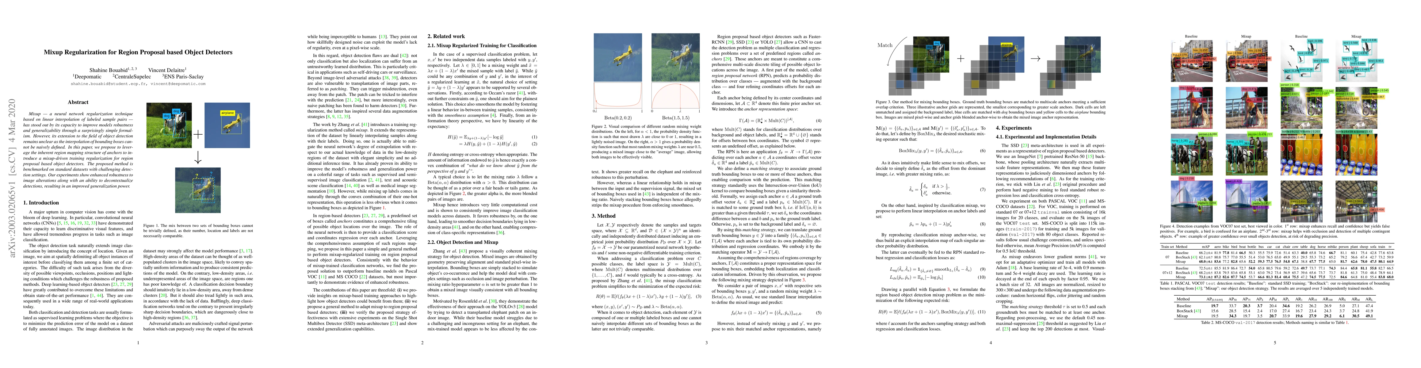 Mixup - a neural network regularization technique based on linear interpolation of labeled sample pairs - has stood out by its capacity to improve model's robustness and generalizability through a surprisingly simple formalism. However, its extension to the field of object detection remains unclear as the interpolation of bounding boxes cannot be naively defined. In this paper, we propose to leverage the inherent region mapping structure of anchors to introduce a mixup-driven training regularization for region proposal based object detectors. The proposed method is benchmarked on standard datasets with challenging detection settings. Our experiments show an enhanced robustness to image alterations along with an ability to decontextualize detections, resulting in an improved generalization power.