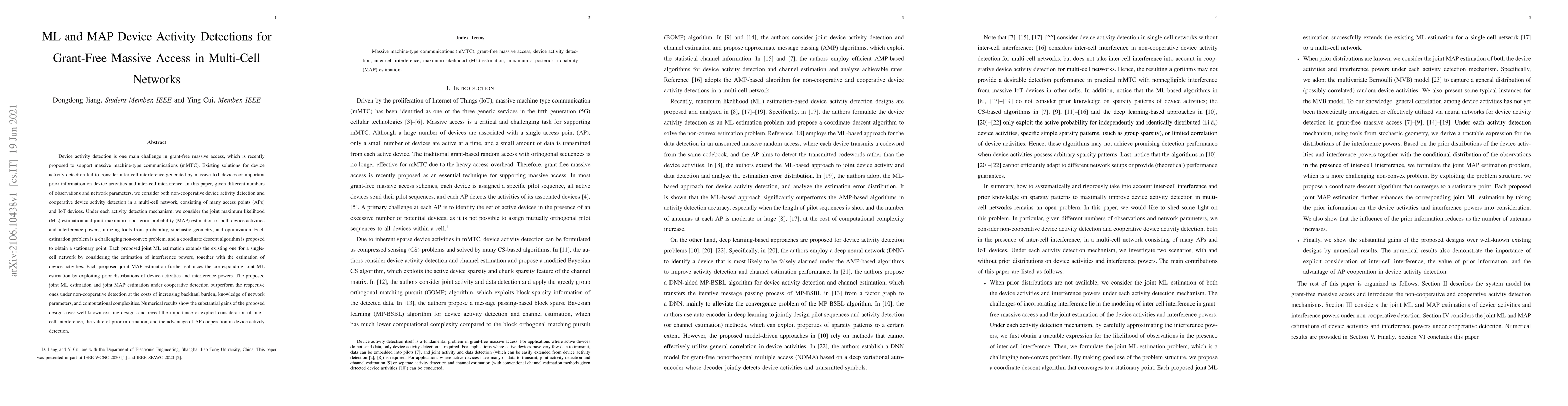 This paper proposes joint maximum likelihood (ML) and maximum a posterior probability (MAP) estimation methods for device activity detection in grant-free massive access multi-cell networks, addressing inter-cell interference and leveraging prior information. The methods outperform non-cooperative detection but increase backhaul burden, require network parameter knowledge, and have higher computational complexity.