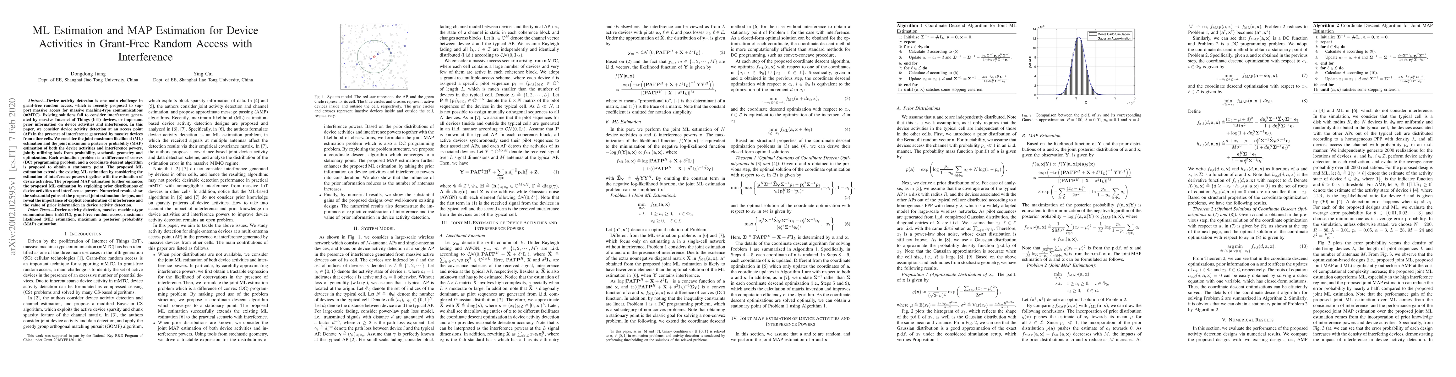 This paper proposes joint maximum likelihood (ML) and maximum a posterior probability (MAP) estimation techniques for device activity detection in grant-free random access, considering interference from massive IoT devices. The methods leverage probability, stochastic geometry, and optimization, and show significant gains over existing solutions by explicitly accounting for interference and prior information.