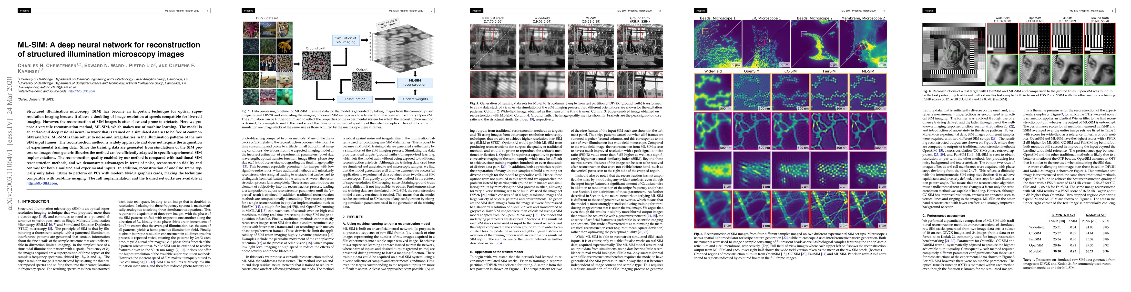 ML-SIM introduces a deep learning-based, end-to-end reconstruction method for SIM images, trained on simulated data to avoid common artifacts and achieve high-speed, high-quality reconstruction.