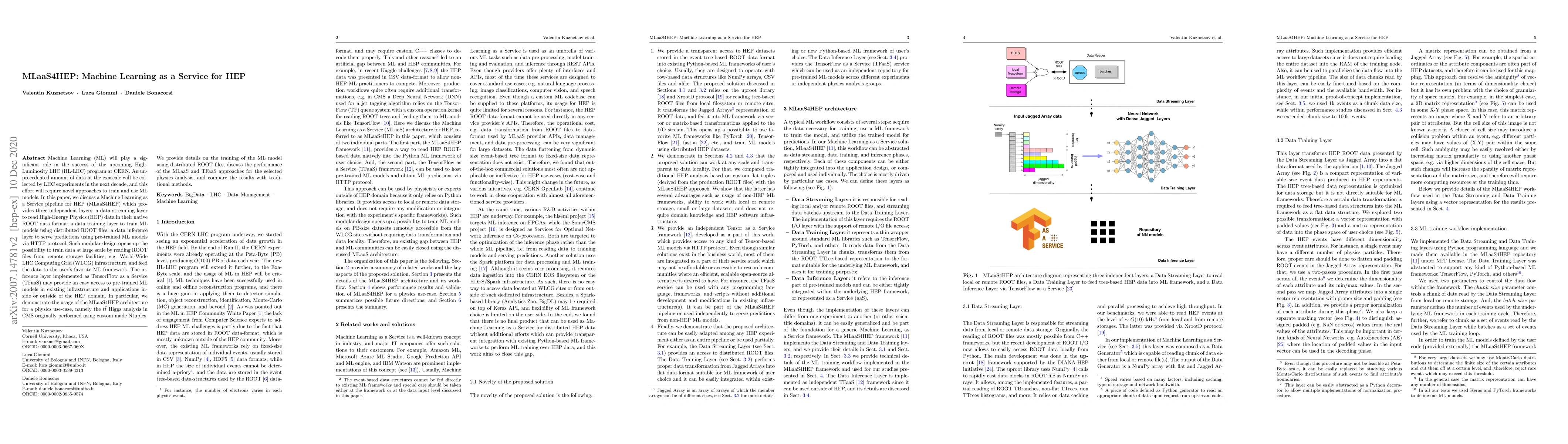 The main technical contribution is the MLaaS4HEP architecture, which separates training and inference layers, allowing independent scaling and deployment. It also includes the TensorFlow as a Service (TFaaS) for serving pre-trained models.