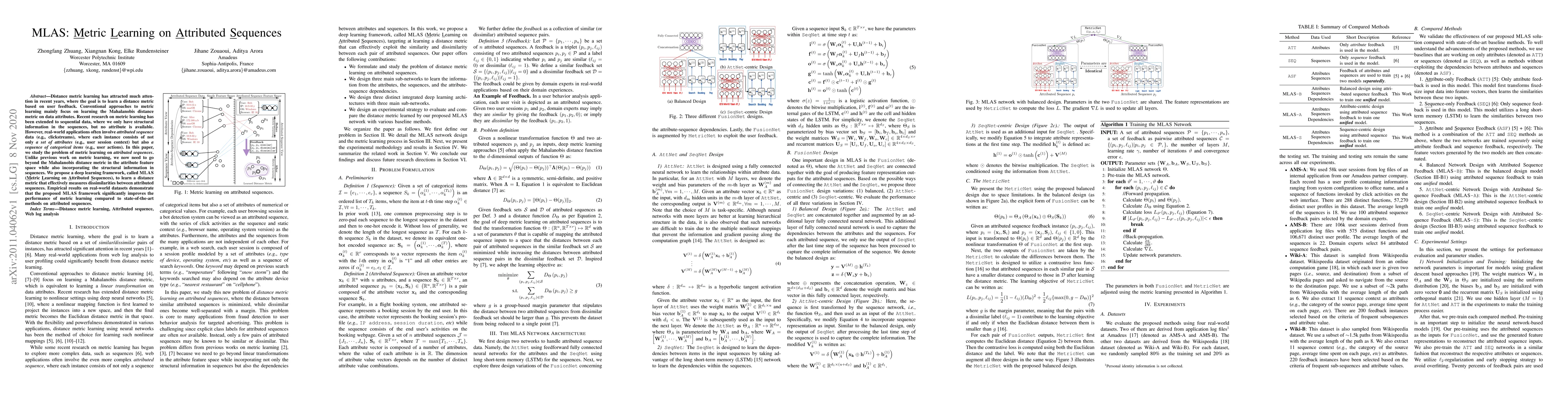 This paper introduces MLAS, a deep learning framework for metric learning on attributed sequences, which combines attribute and structural sequence information to improve distance metric learning. Empirical results show MLAS outperforms existing methods on real-world datasets.