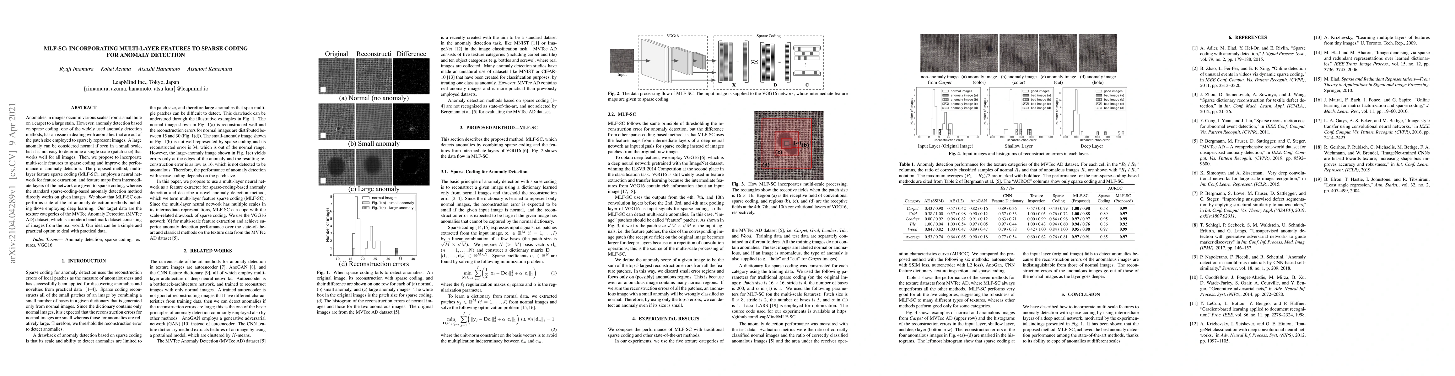 The paper proposes MLF-SC, a method that integrates multi-layer features from a neural network into sparse coding to enhance anomaly detection in images. This approach outperforms existing methods, including those using deep learning, on the MVTec Anomaly Detection dataset.