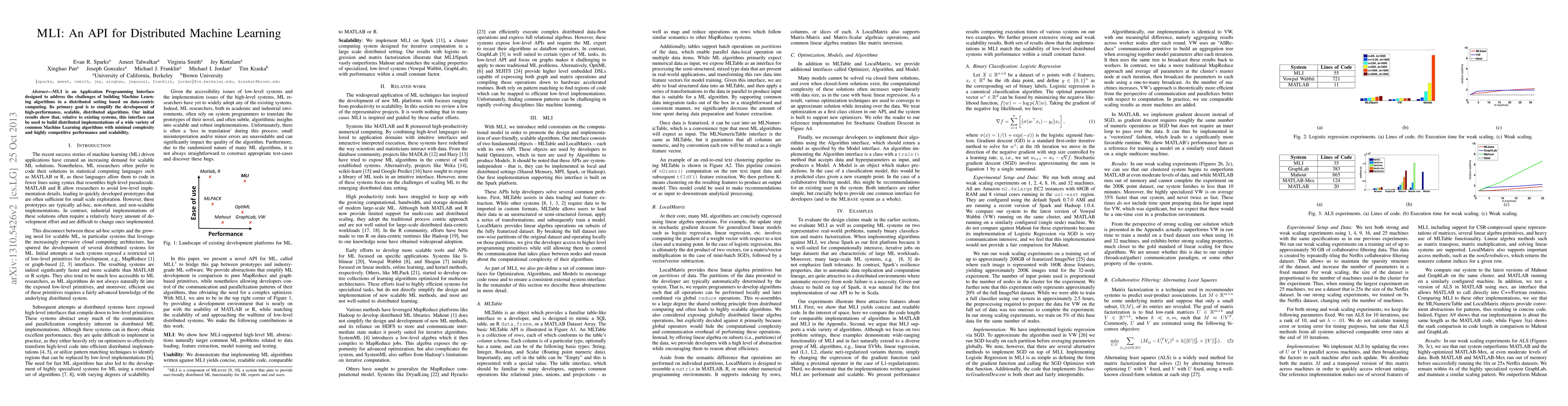 MLI is an Application Programming Interface designed to address the challenges of building Machine Learn- ing algorithms in a distributed setting based on data-centric computing. Its primary goal is to simplify the development of high-performance, scalable, distributed algorithms. Our initial results show that, relative to existing systems, this interface can be used to build distributed implementations of a wide variety of common Machine Learning algorithms with minimal complexity and highly competitive performance and scalability.