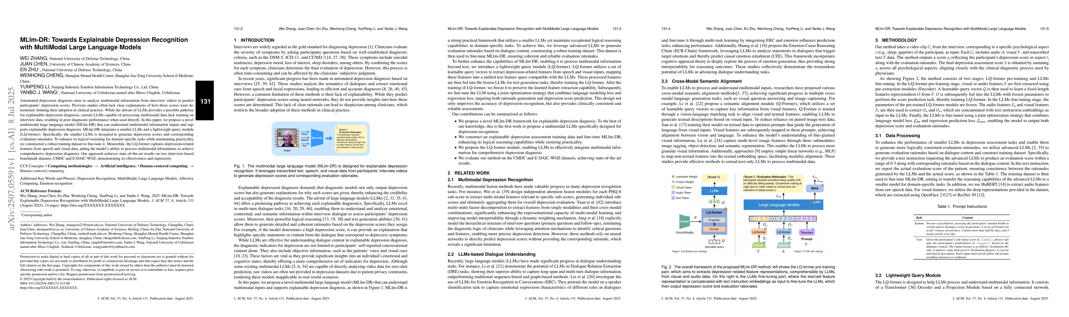 Automated depression diagnosis aims to analyze multimodal information from interview videos to predict participants' depression scores. Previous studies often lack clear explanations of how these scores were determined, limiting their adoption in clinical practice. While the advent of LLMs provides a possible pathway for explainable depression diagnosis, current LLMs capable of processing multimodal data lack training on interview data, resulting in poor diagnostic performance when used directly. In this paper, we propose a novel multimodal large language model (MLlm-DR) that can understand multimodal information inputs and supports explainable depression diagnosis. MLlm-DR integrates a smaller LLMs and a lightweight query module (LQ-former). Specifically, the smaller LLMs is designed to generate depression scores and corresponding evaluation rationales. To enhance its logical reasoning for domain-specific tasks while maintaining practicality, we constructed a robust training dataset to fine-tune it. Meanwhile, the LQ-former captures depression-related features from speech and visual data, aiding the model's ability to process multimodal information, to achieve comprehensive depression diagnosis. Our approach achieves state-of-the-art results on two interview-based benchmark datasets, CMDC and E-DAIC-WOZ, demonstrating its effectiveness and superiority.