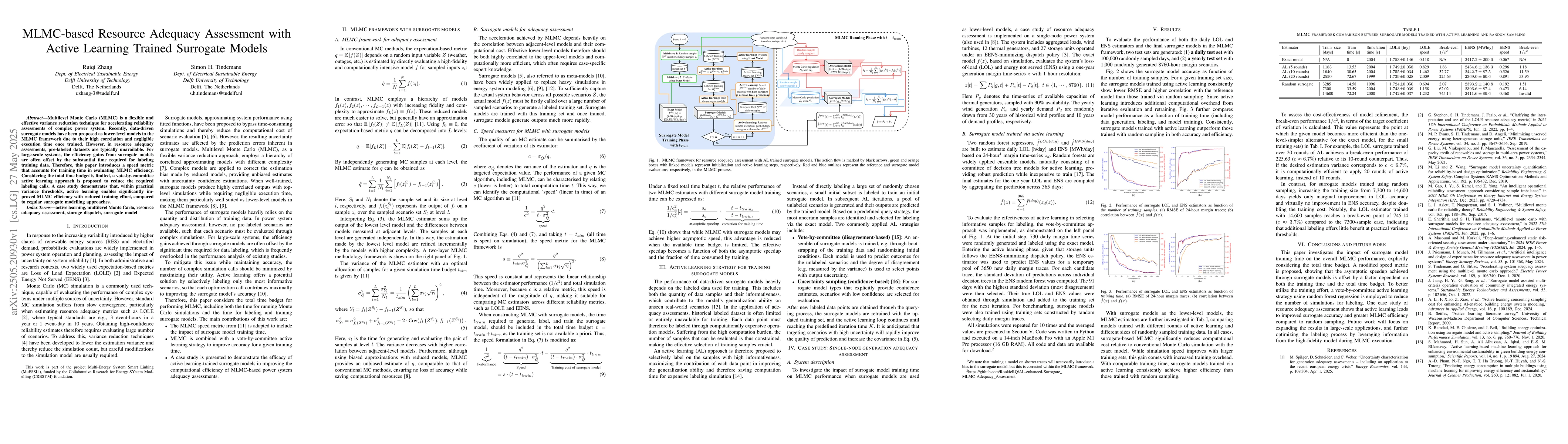 This paper introduces an active learning approach to improve efficiency in Multilevel Monte Carlo-based resource adequacy assessments by reducing the time required for training surrogate models.