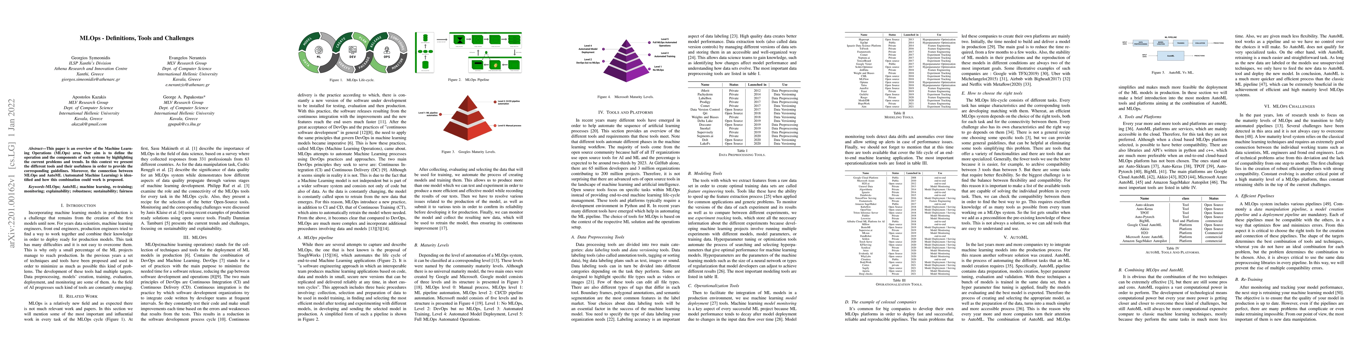 This paper is an overview of the Machine Learning Operations (MLOps) area. Our aim is to define the operation and the components of such systems by highlighting the current problems and trends. In this context, we present the different tools and their usefulness in order to provide the corresponding guidelines. Moreover, the connection between MLOps and AutoML (Automated Machine Learning) is identified and how this combination could work is proposed.
