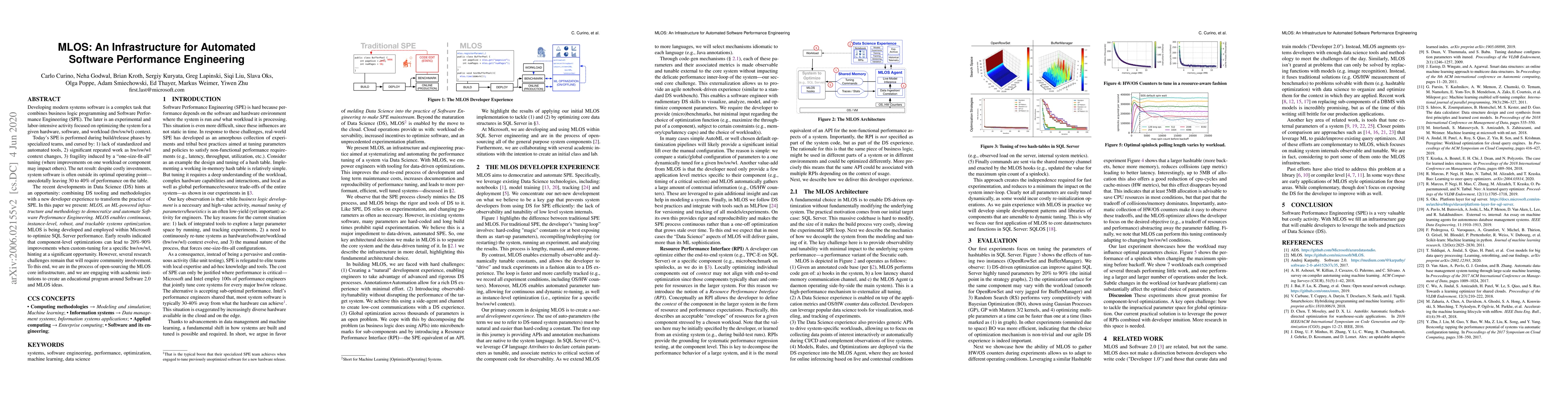 MLOS is an ML-powered infrastructure that automates software performance engineering, aiming to optimize system performance for specific hardware, software, and workload contexts, with early results showing 20-90% improvements.