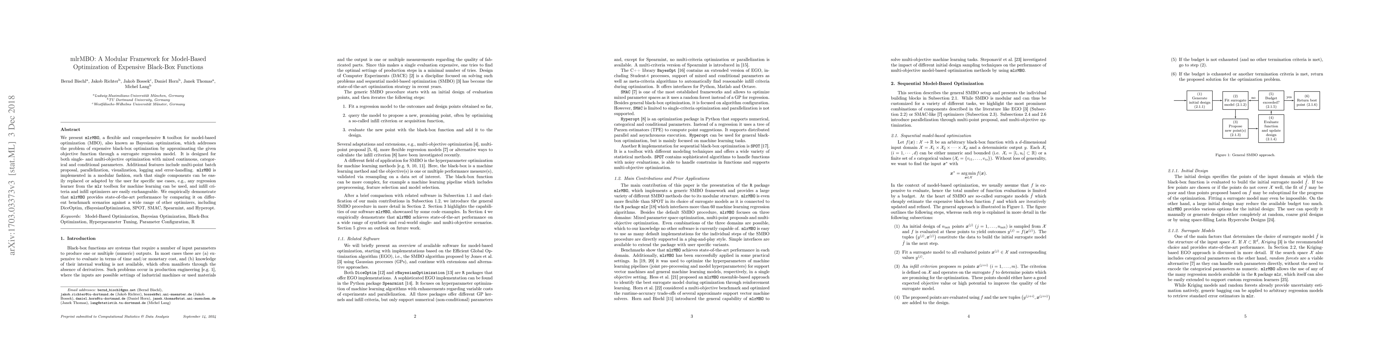 The paper introduces mlrMBO, an R toolbox for model-based optimization (MBO) that efficiently handles expensive black-box functions through surrogate regression models. It offers flexibility for single and multi-objective optimization with various parameter types and includes features like parallelization, visualization, and modular component replacement.