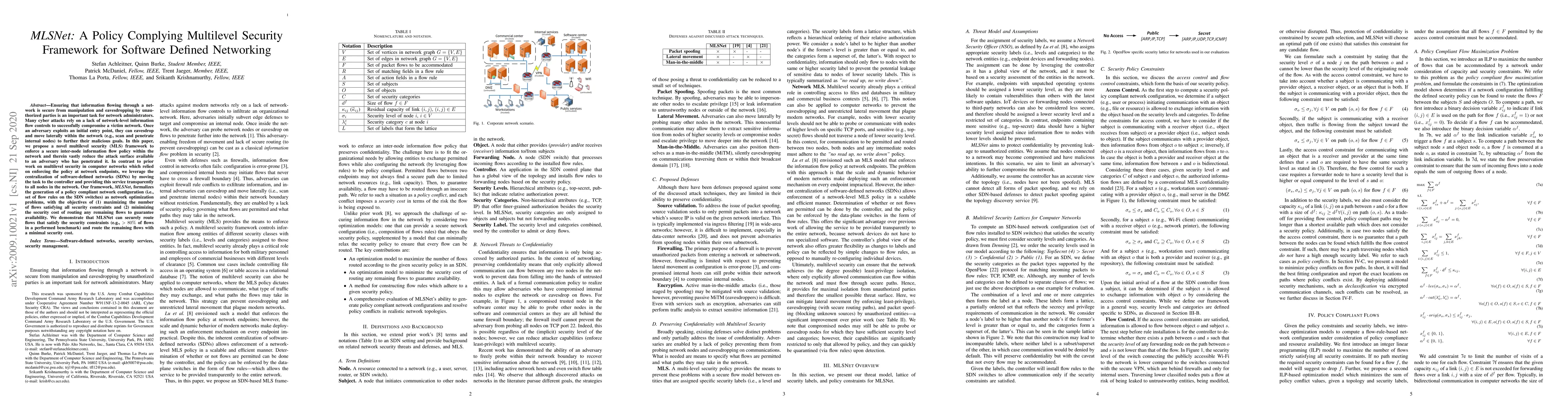 MLSNet proposes a multilevel security framework for software-defined networking to enforce secure inter-node information flow policies, reducing the attack surface for adversaries. It leverages the SDN controller to optimize network configuration, achieving high compliance with security constraints while minimizing security costs.