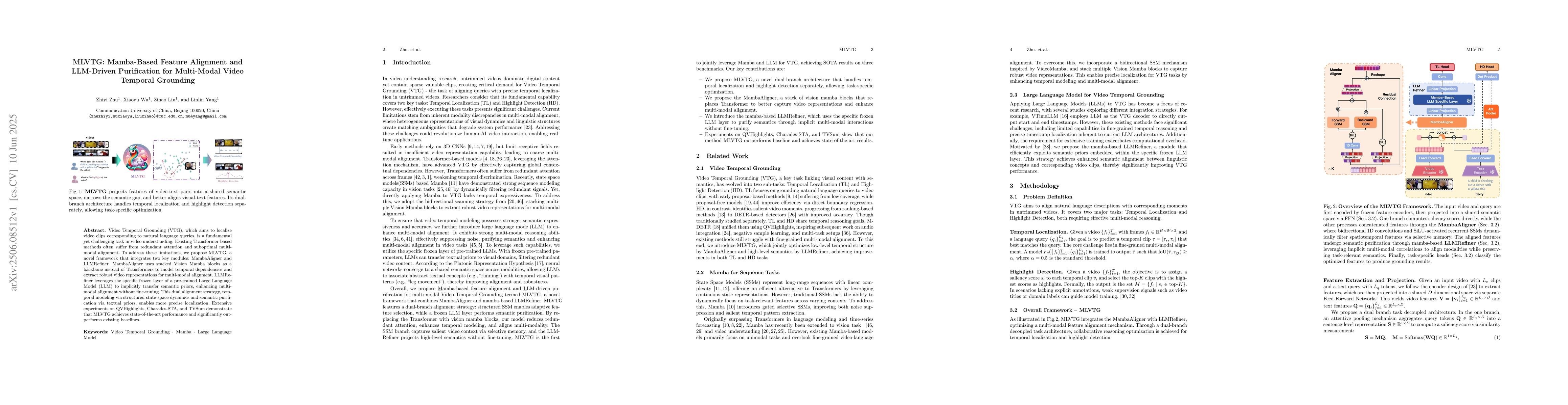 Video Temporal Grounding (VTG), which aims to localize video clips corresponding to natural language queries, is a fundamental yet challenging task in video understanding. Existing Transformer-based methods often suffer from redundant attention and suboptimal multi-modal alignment. To address these limitations, we propose MLVTG, a novel framework that integrates two key modules: MambaAligner and LLMRefiner. MambaAligner uses stacked Vision Mamba blocks as a backbone instead of Transformers to model temporal dependencies and extract robust video representations for multi-modal alignment. LLMRefiner leverages the specific frozen layer of a pre-trained Large Language Model (LLM) to implicitly transfer semantic priors, enhancing multi-modal alignment without fine-tuning. This dual alignment strategy, temporal modeling via structured state-space dynamics and semantic purification via textual priors, enables more precise localization. Extensive experiments on QVHighlights, Charades-STA, and TVSum demonstrate that MLVTG achieves state-of-the-art performance and significantly outperforms existing baselines.