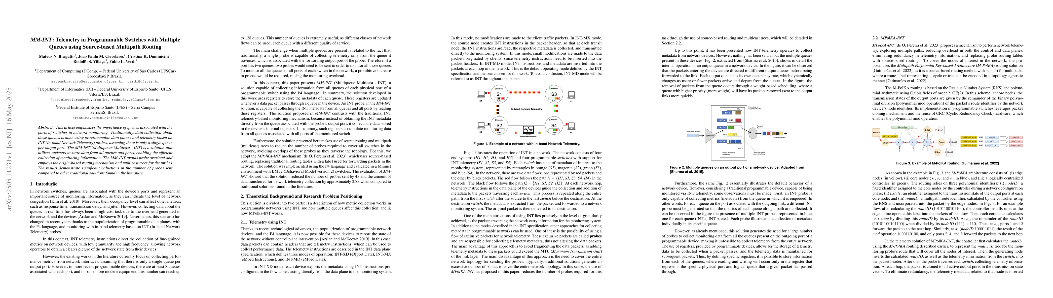 This work is novel by addressing the shortcomings of traditional INT probes that assume single queues per output port, proposing a solution (MM-INT) that efficiently handles multiple queues and reduces probe overhead through origin-based routing and multicast trees.