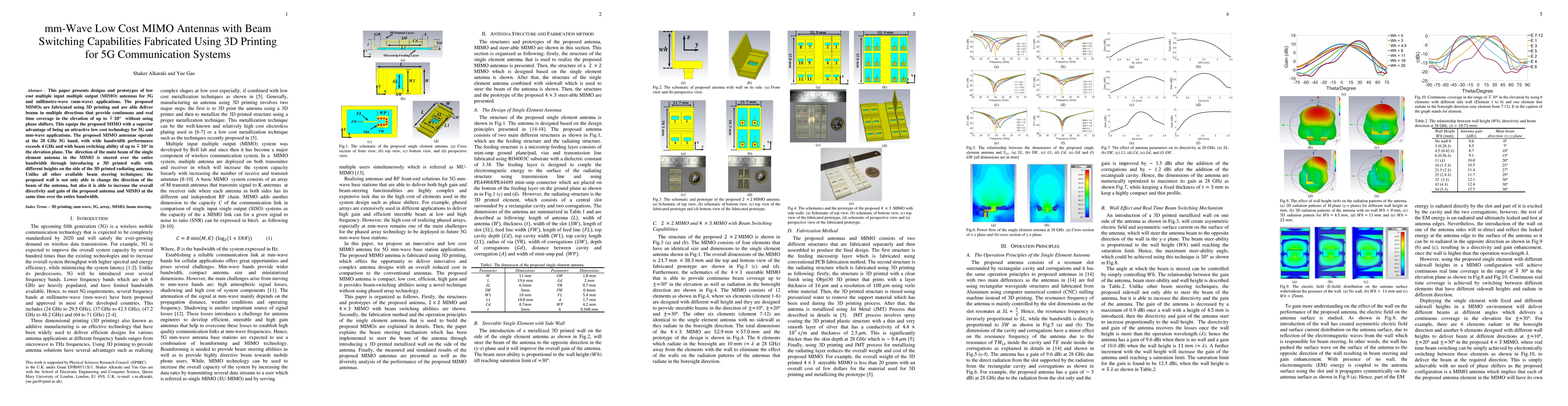 This paper introduces low-cost 3D printed mm-Wave MIMO antennas for 5G applications, enabling beam switching without phase shifters and achieving a wide bandwidth of over 4 GHz. The innovative 3D printed walls adjust the beam direction and enhance directivity and gain.
