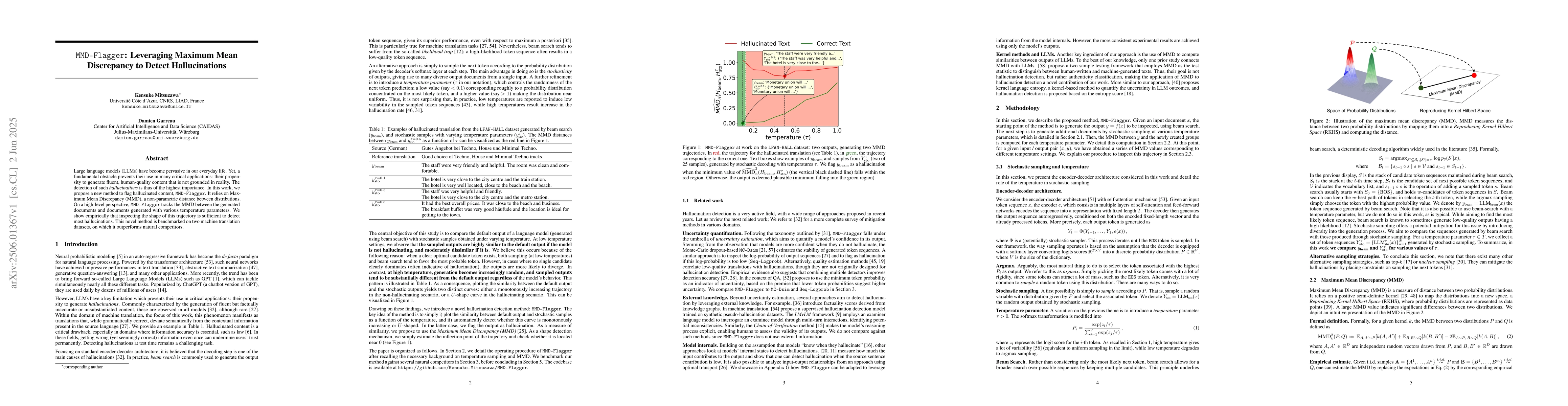 A new method, MMD-Flagger, uses Maximum Mean Discrepancy to detect hallucinations in large language models by tracking the difference between generated documents and those with varying temperature parameters.