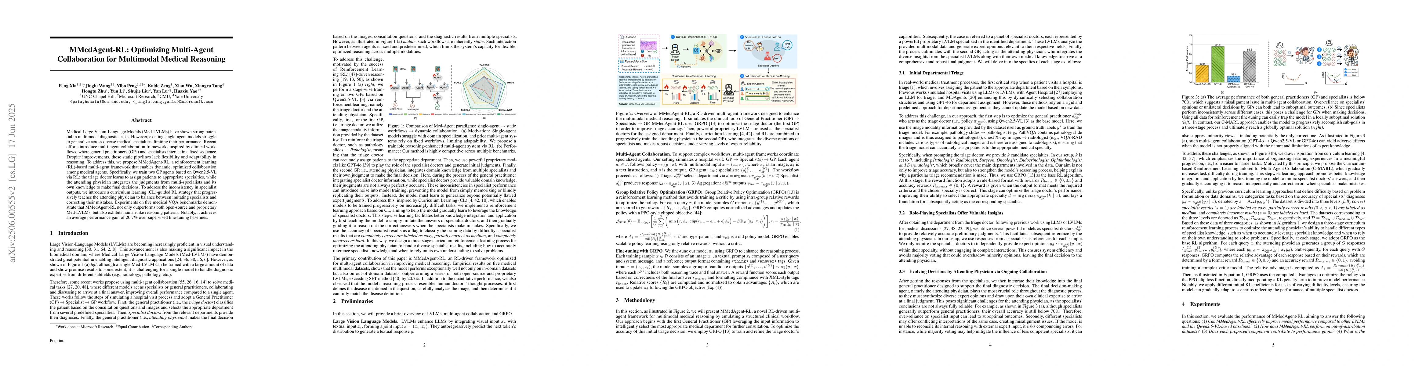 Researchers developed MMedAgent-RL, a reinforcement learning framework that enables flexible collaboration among medical agents for multimodal diagnostic tasks, outperforming existing models with an average performance gain of 18.4%.
