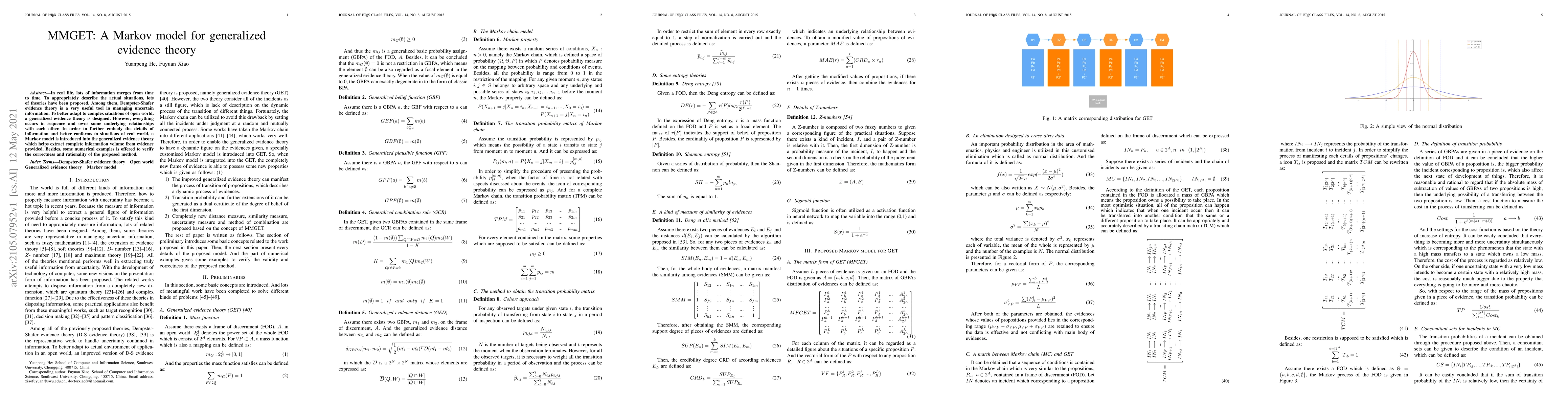 This paper introduces MMGET, a Markov model for generalized evidence theory, which combines Dempster-Shafer's tool with sequence information to better adapt to complex real-world situations.